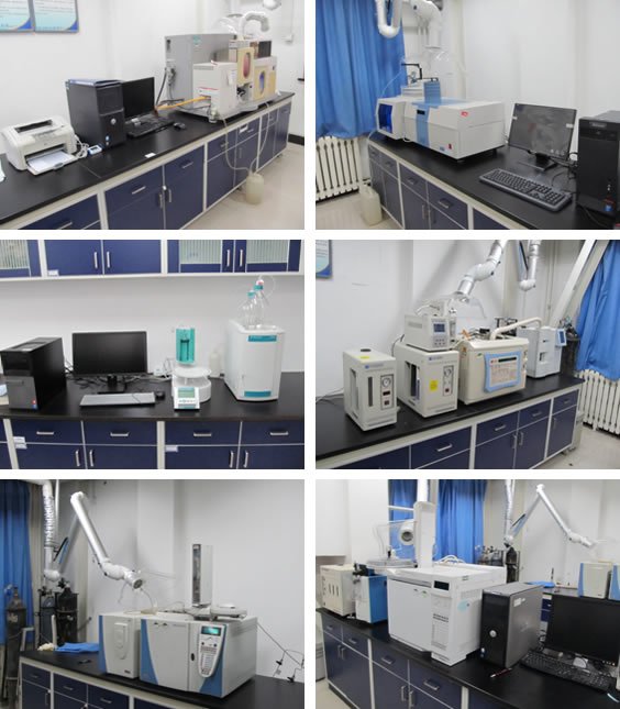 配备有原子吸收、气相色谱、原子荧光、液相色谱、气相色谱/质谱联用系统等大型分析仪器。可进行作业场所有毒有害物质的定性、定量分析。开展环境空气、水质以及化工产品各种金属、有机指标的检测。
