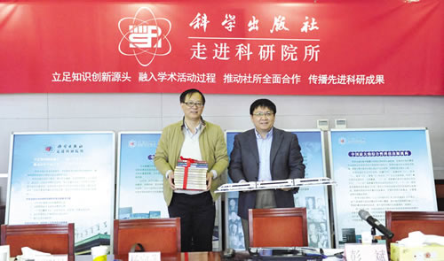 彭斌介绍了科学出版社的概况。科学出版社的前身为1930年在上海成立的龙门书局,2011年7月,改制成立中国科技出版传媒集团有限公司暨中国科技出版传媒股份有限公司。科学出版社自成立以来,整理和出版了大批代表中国科技发展水平的精品力作,累计出版了4万余种图书,期刊300多种。22位国家最高科技奖得主中,有包括吴文俊、袁隆平、黄昆等在内的12位先生在科学出版社出版了重要学术著作,17位在科学出版社发表了学术论文。在新闻出版总署及业内组织发布的相关统计报告中,科学出版社在规模、竞争力等方面均位列全国出版社前茅,居科技图书出版之首。