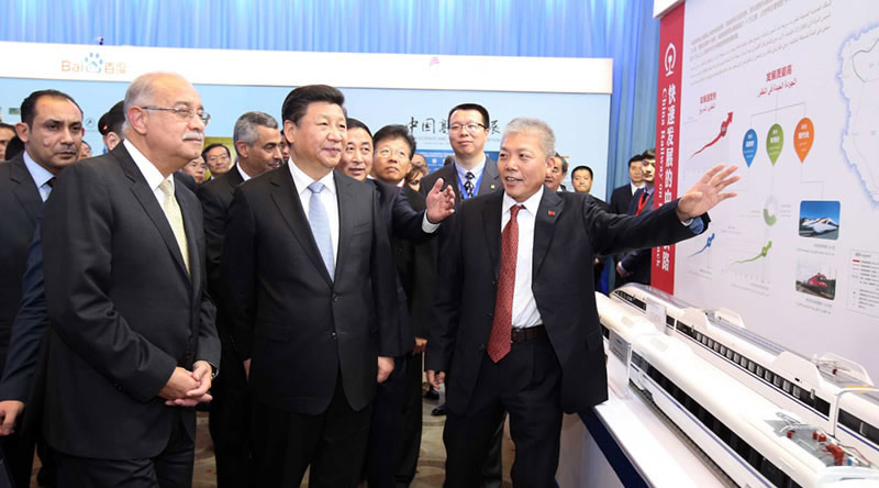 埃及当地时间1月20日下午,中国高科技展在埃及开罗举行,国家主席习近平、埃及总理伊斯梅尔共同参观了展览。在中国铁路展位,习主席亲自向伊斯梅尔总理介绍了中国铁路的建设和发展情况。