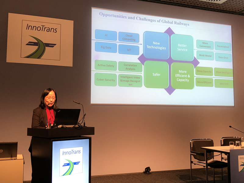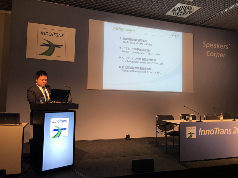 在今年的InnoTrans2018德国柏林国际轨道技术展览会上,有7位铁科人走上InnoTrans的演讲台,向全世界展示中国铁路的魅力。18日当天,电子所李平、通号所尹逊政、通号所苗义峰、通号所潘明分别在展会现场作主题技术演讲。