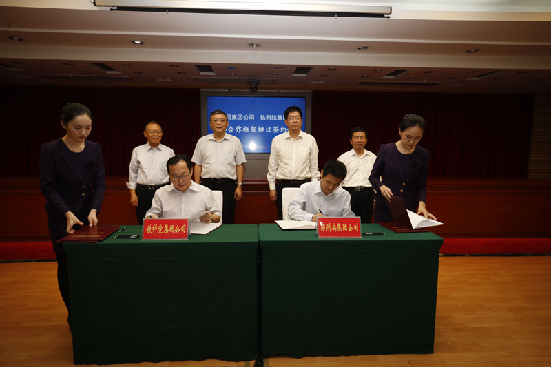 在参会人员的共同见证下,铁科院集团公司副总经理李学峰与郑州局集团公司副总经理陈杰代表双方签署了战略合作协议。