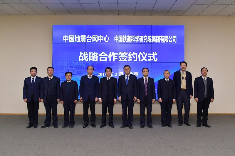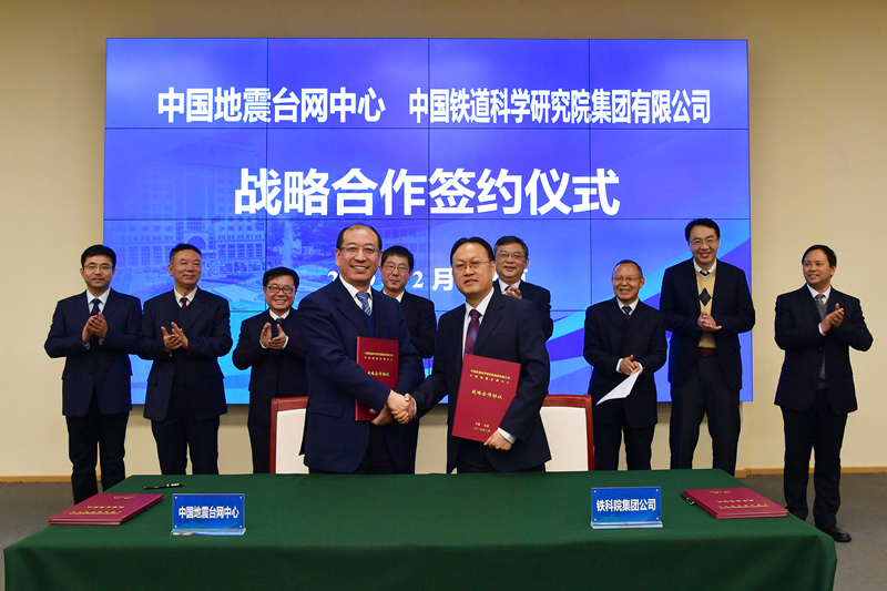 2月22日上午,千亿球友会(体育)官方网站(以下简称“铁科院集团公司”)与中国地震台网中心(以下简称“台网中心”)战略合作协议签约仪式在铁科院集团公司国家铁道试验中心举行。中国地震台网中心主任王海涛,党委书记、副主任孙雄,副主任刘杰,铁科院集团公司党委书记、董事长周黎,总经理叶阳升,副总经理牛道安出席签约仪式。集团公司相关部门、单位负责人参加签约仪式。