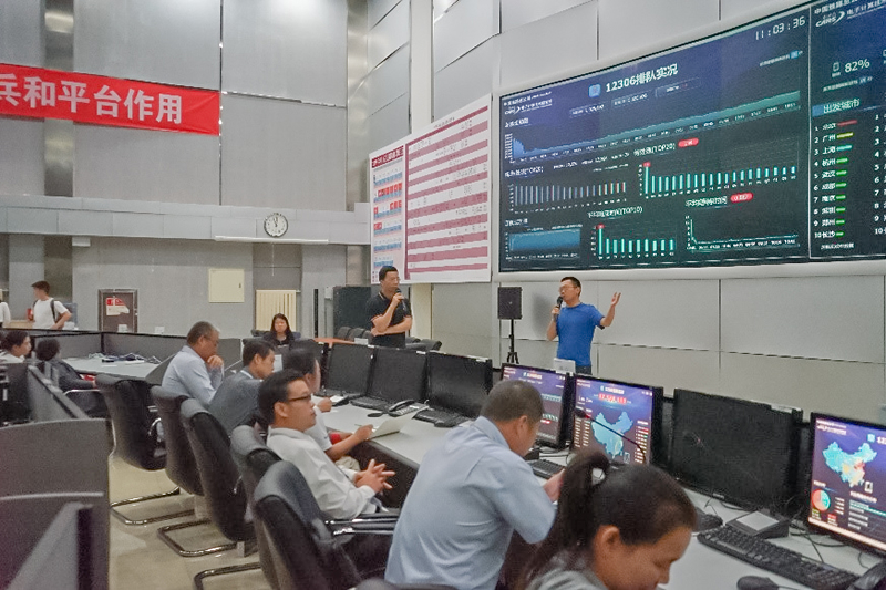 老挝一行人员首先参观了 12306 客票系统监控中心,电子所技术人员向他们介绍了 12306 客票系统运营维护情况。期间,老挝相关人员就客票系统使用情况及网站如何满足于旅客出行需求等方面的问题与技术人员进行了深入沟通交流。